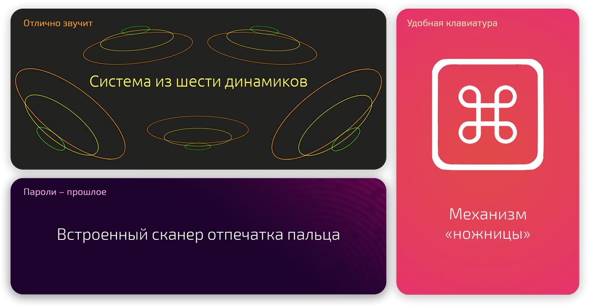 Шесть динамиков обеспечивают пространственное звучание с поддержкой Dolby Atmos. Как и многие другие устройства Apple, ноутбук обеспечит работу ваших любимых фишек AirPods и Beats. Для любителей проводных моделей предусмотрен аудиоразъём 3,5 мм с поддержкой высокоимпедансных наушников. Ну а микрофоны с функцией шумоподавления передают голос чётко даже в шумных помещениях.