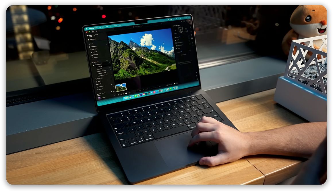 14-дюймовый дисплей Liquid Retina XDR обеспечивает детализированное изображение с контрастностью 1 000 000:1. Яркость до 1000 нит (1600 нит в пике) и технология True Tone позволяют комфортно работать при любом освещении, а частота обновления до 120 Гц делает движение на экране плавным. Цветовой охват P3 передаёт оттенки максимально близко к реальности, что важно при редактировании фото и видео – эталонный монитор всегда с вами!