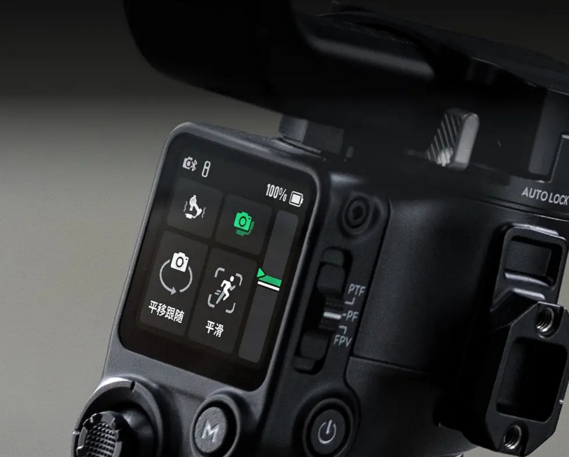 RS 5 поддерживает совершенно новый встроенный электронно-управляемый ручной адаптер, позволяющий управлять стабилизатором и камерой одной рукой, легко разблокировать различные углы съемки и облегчающий удержание.