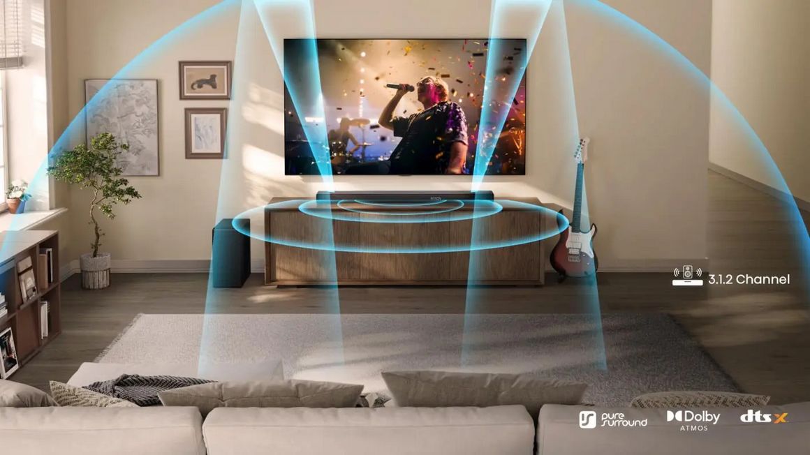Погрузитесь в 3.1.2-канальный звук с поддержкой технологий Dolby Atmos и DTS:X, которые создают обволакивающий акустический эффект и превращают каждую сцену в незабываемое путешествие.