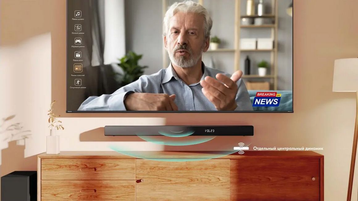 При сопряжении с Hisense TV в ТВ-режиме динамики саундбара целиком раскрывают свой потенциал и обеспечивают непревзойденное аудиальное восприятие с созданием иммерсивного звукового окружения.