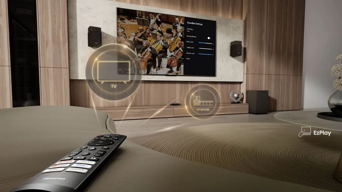 Особенности: Быстрый доступ к настройкам саундбара и управление им напрямую из меню телевизора при помощи пульта от ТВ.