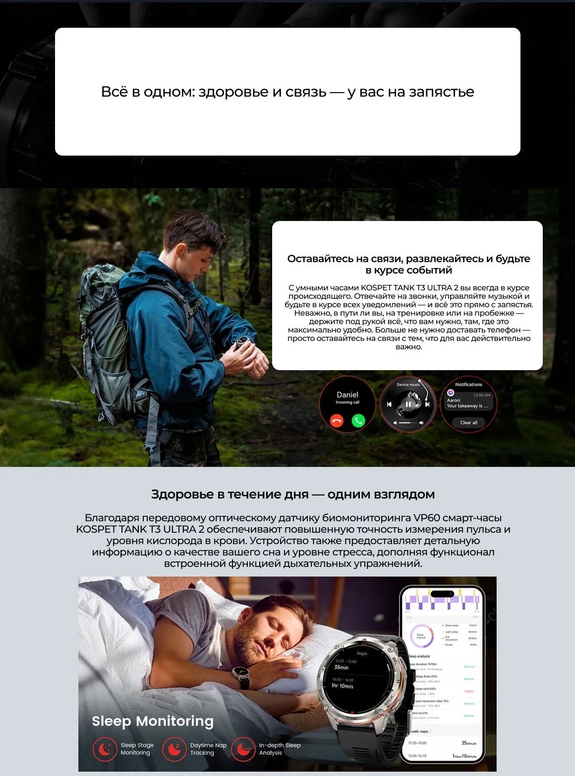 Мониторинг: Сна, Сердечного ритма, Уровня стресса