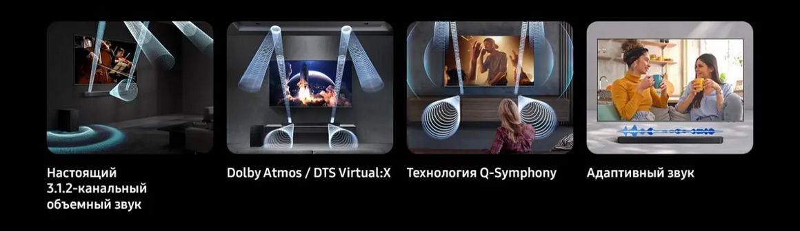 Технология Q-Symphony позволяет искусственному интеллекту разделять звуковую дорожку на составляющие её голоса и фоновые звуки и распределять их по оптимальным каналам. Телевизор и саундбар звучат как единая аудиосистема с четкими диалогами и захватывающим объемным звуком.
