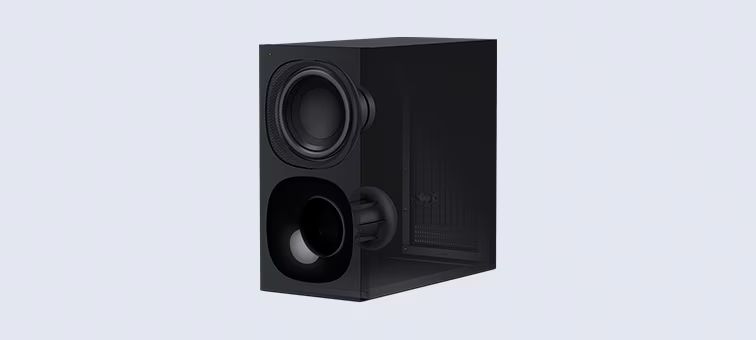 Мощный беспроводной сабвуфер воспроизводит глубокие, насыщенные басы и легко подключается по беспроводной связи.