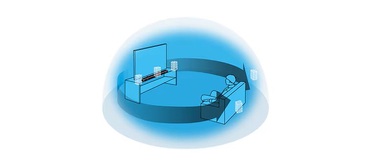 С помощью фронтальных акустических систем уникальная технология цифровой обработки звукового поля от Sony воспроизводит виртуальный объемный звук, который поступает с обеих сторон. Нет необходимости добавлять тыловые акустические системы — вы можете наслаждаться кинематографическим объемным звуком, не загромождая жилое пространство.