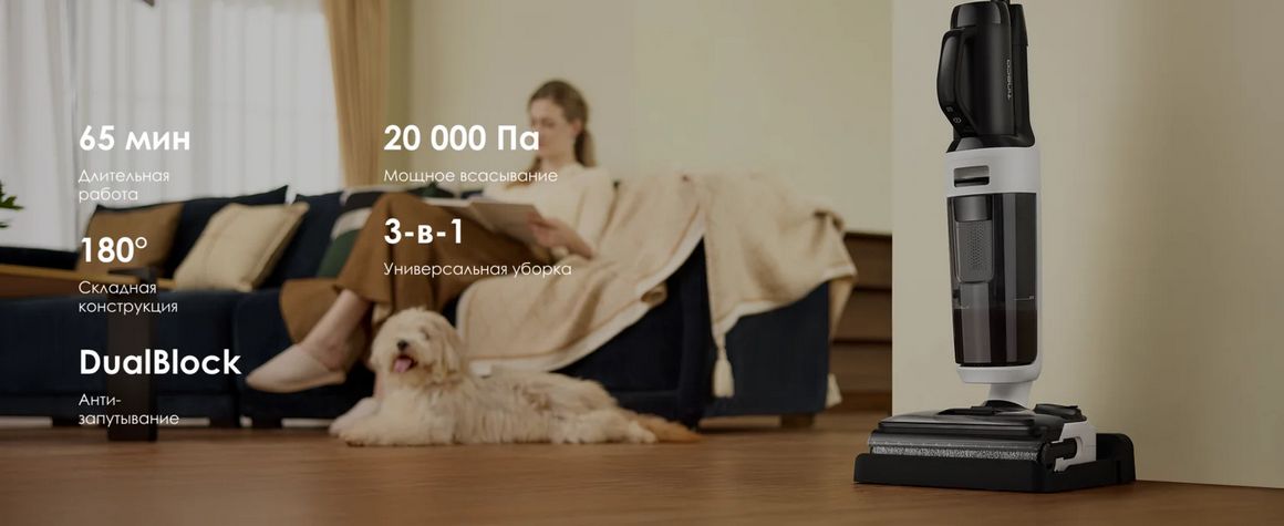 Мощное всасывание 20 000 Па : помогает легко и эффективно производить глубокое очищение, превращая рутинную уборку в настоящее удовольствие.