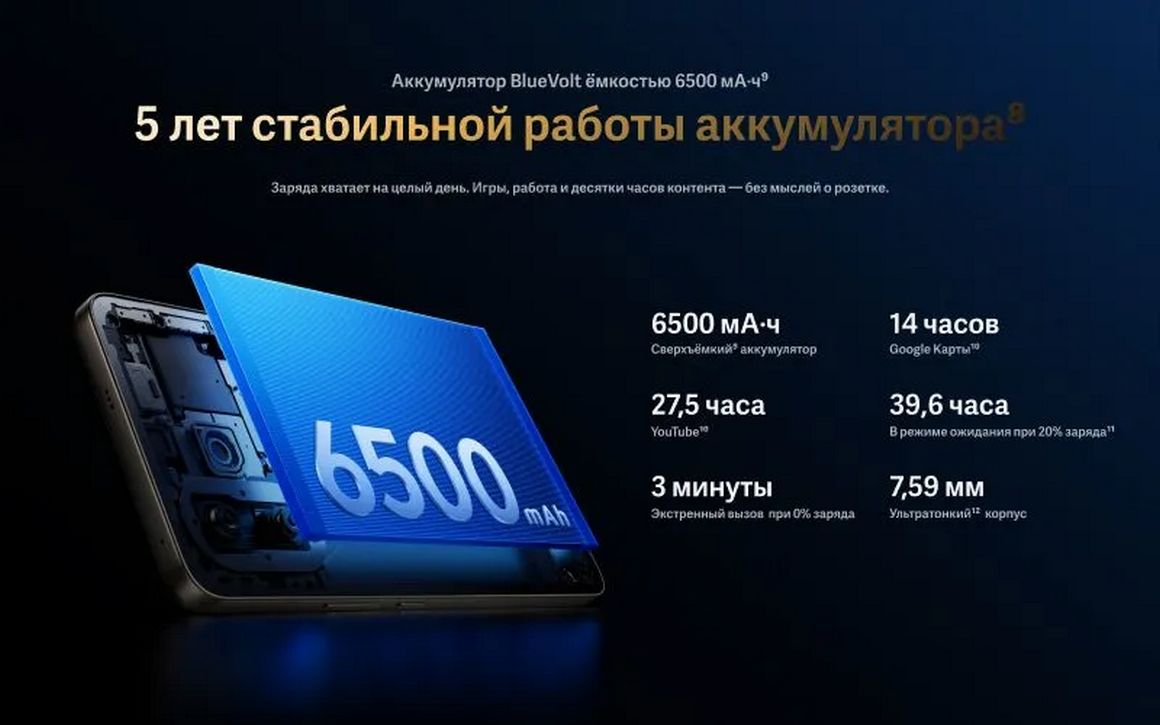 Емкость аккумулятора: 6500 мАч.