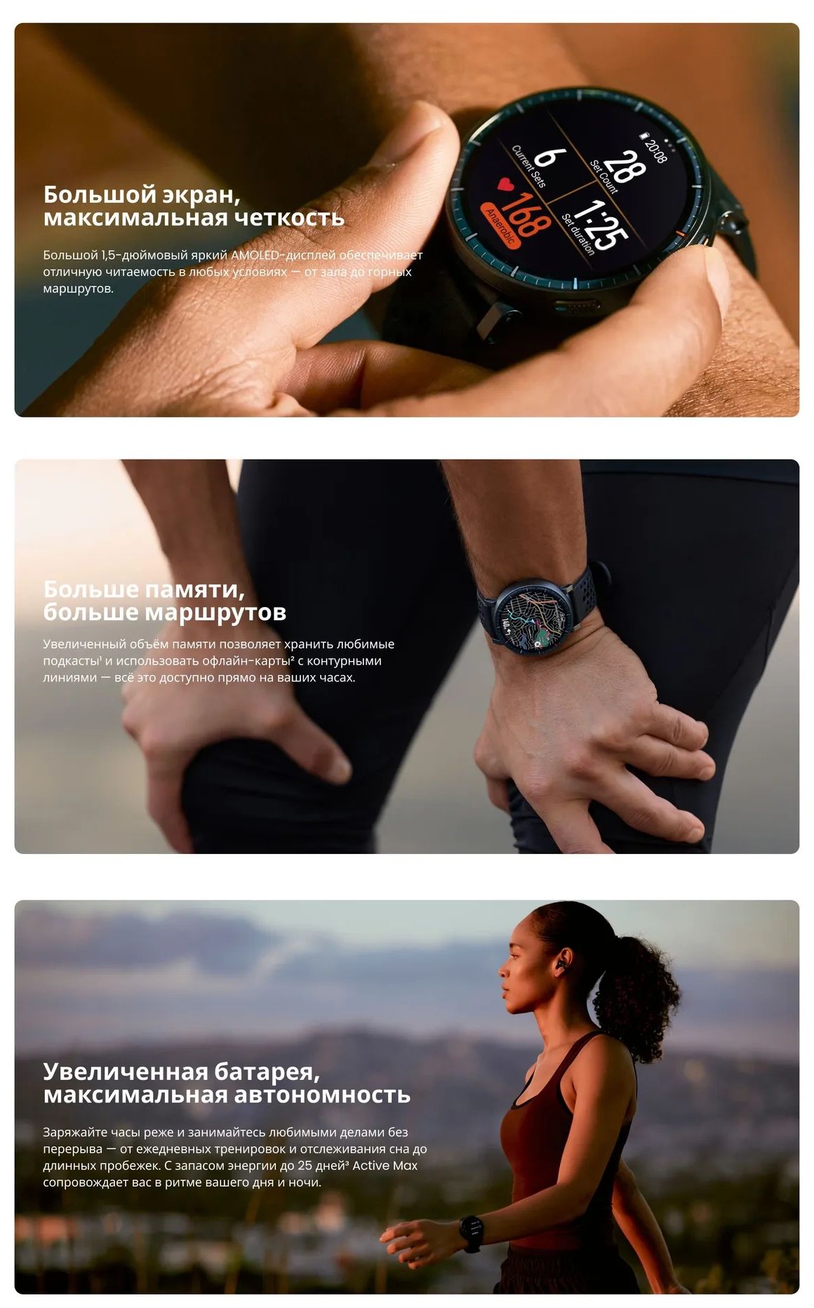 От первого километра до последрнего подхода — эти часы помогают тренироваться с комфортом и по плану, поддерживая любые цели: от интенсивных тренировок до походов на природе.