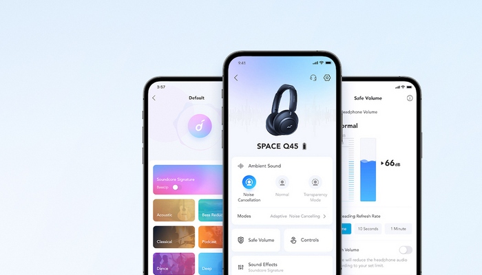 Наушники Space Q45 сочетают в себе изысканный дизайн, эргономичную конструкцию и детали, повышающие комфорт при длительном ношении. Петли из алюминиевого сплава изгибаются, чтобы соответствовать форме вашей головы, а мягкое оголовье имеет бесшовную скользящую конструкцию для легкого удлинения. Чтобы соответствовать ушам разных размеров, амбушюры имеют более широкий диаметр, а также упруго-мягкую амортизацию для многочасового комфорта.