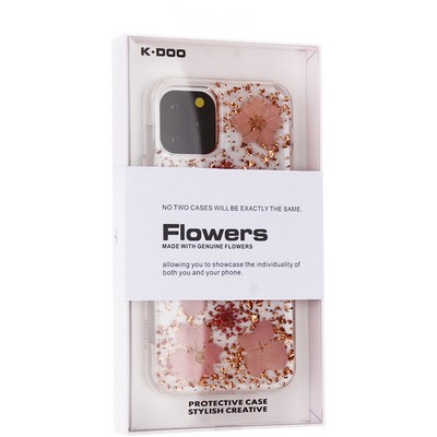 Чехол-накладка силиконовая KZDOO Flowers TPU+Dried Flowers+Lucite для Iphone 11 Pro Max (6.5") Розовая