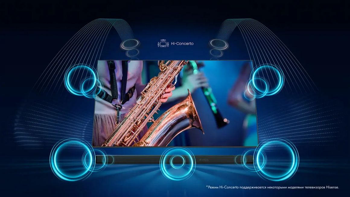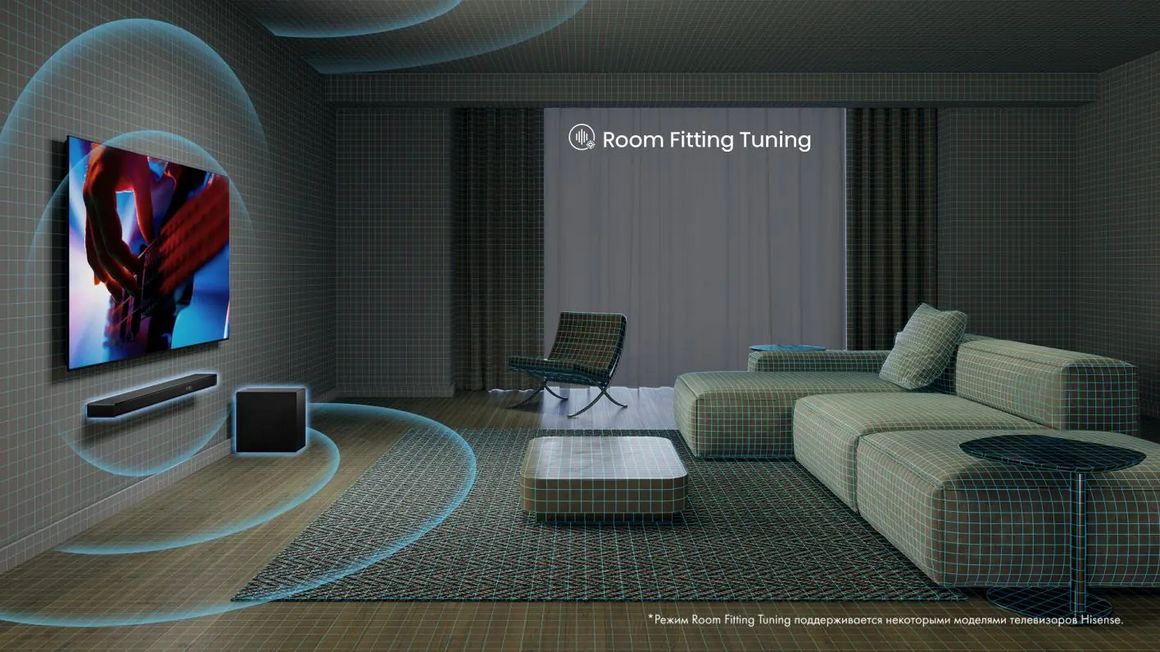 C помощью встроенной в телевизор Hisense ИИ-технологии оптимизируйте звук в соответствии с особенностями планировки. Индивидуальное звучание достигается за счет плавной адаптации к пространству и точности воспроизведения.