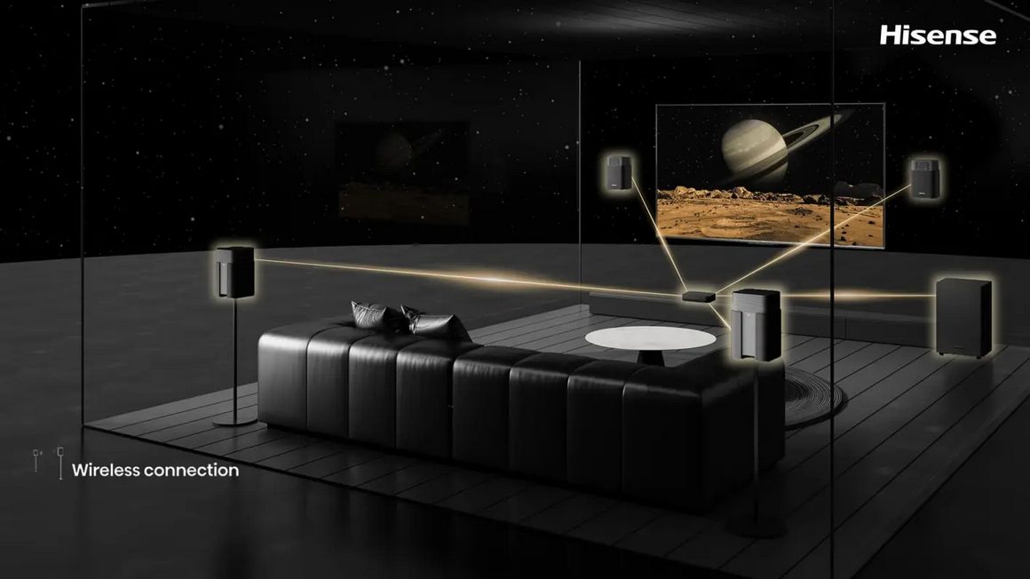 Система домашнего кинотеатра, способная органично вписаться в любой дом за счет беспроводного подключения динамиков с возможностью настенного крепления или размещения в удобных местах комнаты.
