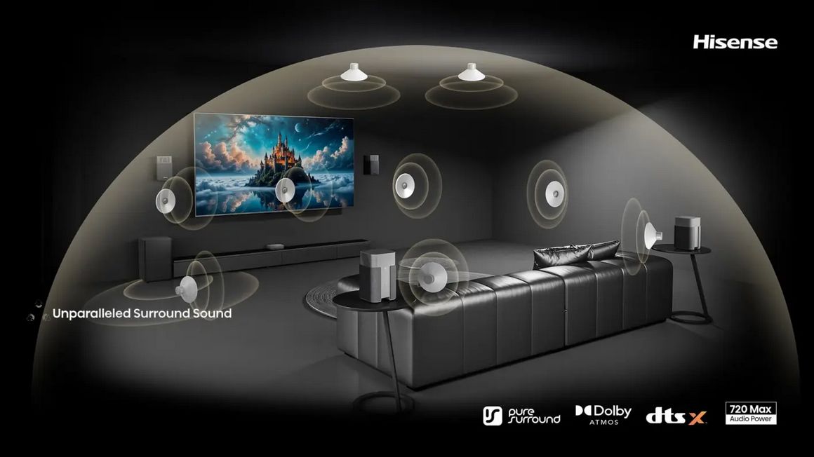 Окунитесь в кинематографический звук с передовыми технологиями объемного звучания. Уникальные алгоритмы обеспечивают чистый и точный звук без искажений, а Dolby Atmos и DTS:X создают эффект полного присутствия. 13 мощных динамиков и 720 Вт выходной мощности наполняют ваш дом объемным, детализированным звучанием, создавая идеальную акустическую атмосферу.