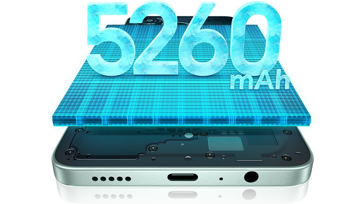 Ёмкость аккумулятора составляет 5260 мАч, что является одним из самых высоких показателей в своём классе. Такой объём энергии даёт до 20 часов активного просмотра социальных сетей и длительное использование устройства в режиме умеренной нагрузки. Реализована и фирменная технология сверхэнергосбережения, при которой 10% заряда батареи могут обеспечивать до 61 часа в режиме ожидания. Зарядка осуществляется на мощности 15 Вт.