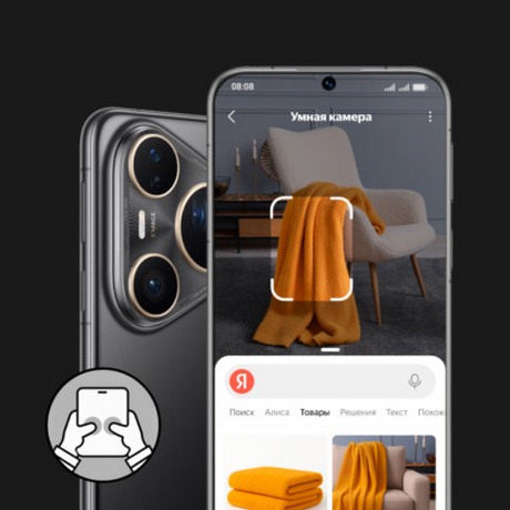 Нажмите двумя пальцами на экран для быстрого поиска. Жест откроет Умную камеру Яндекса, которая распознаёт объекты и помогает узнать больше. Можно сразу уточнить: «Хочу такой же плед, но красный» — и получить результат.