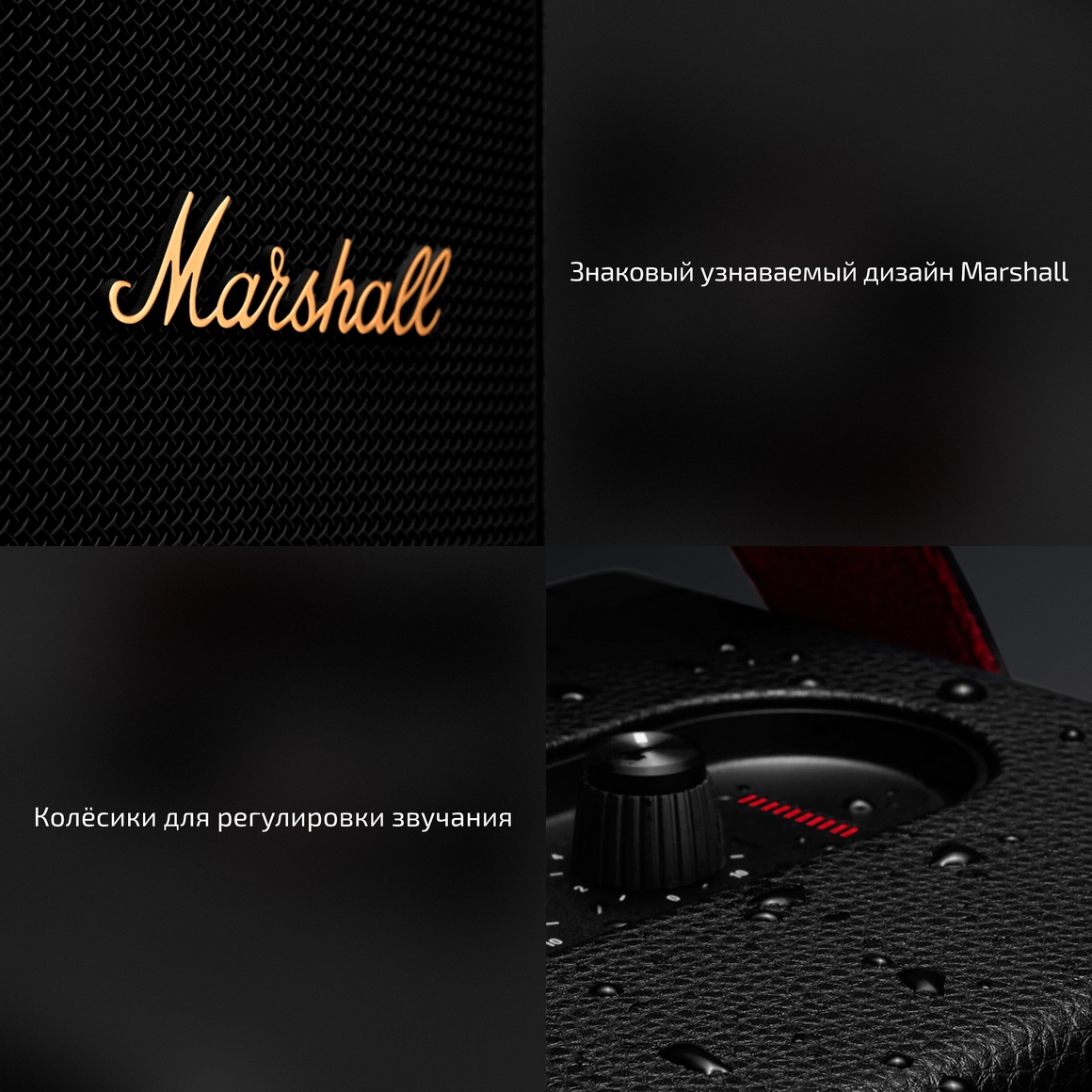 Marshall у многих ассоциируется с усилителями и легендарными колонками и Tufton радует не только знаковым дизайном, но и наличием аналоговых переключателей, с помощью которых можно настраивать не только громкость, но и звучание. Вы можете отрегулировать низкие и высокие частоты прямо на колонке, без необходимости использовать эквалайзер смартфона.