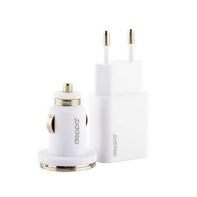 Набор Deppa Ultra MFI D-11150: АЗУ+СЗУ 1А, дата-кабель 8-pin Lightning для Apple 1.2 м, Белый