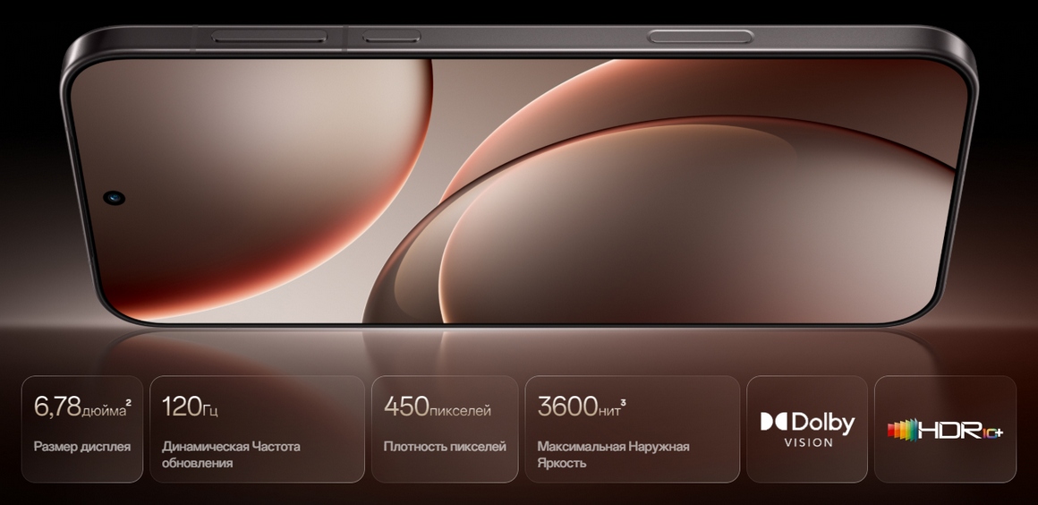 6,78-дюймовый LTPO AMOLED-экран с адаптивной частотой обновления до 120 Гц обеспечивает плавную работу интерфейса, высокую яркость и точную цветопередачу. Технологии защиты зрения и автоматической регулировки яркости делают использование смартфона комфортным в любое время суток.