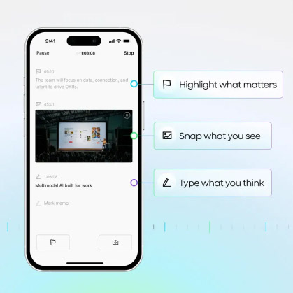 Устройство поддерживает запись аудио, ввод текстовых заметок и добавление изображений. Специальная кнопка позволяет отмечать важные моменты прямо во время разговора, чтобы позже быстро вернуться к ключевым фрагментам.