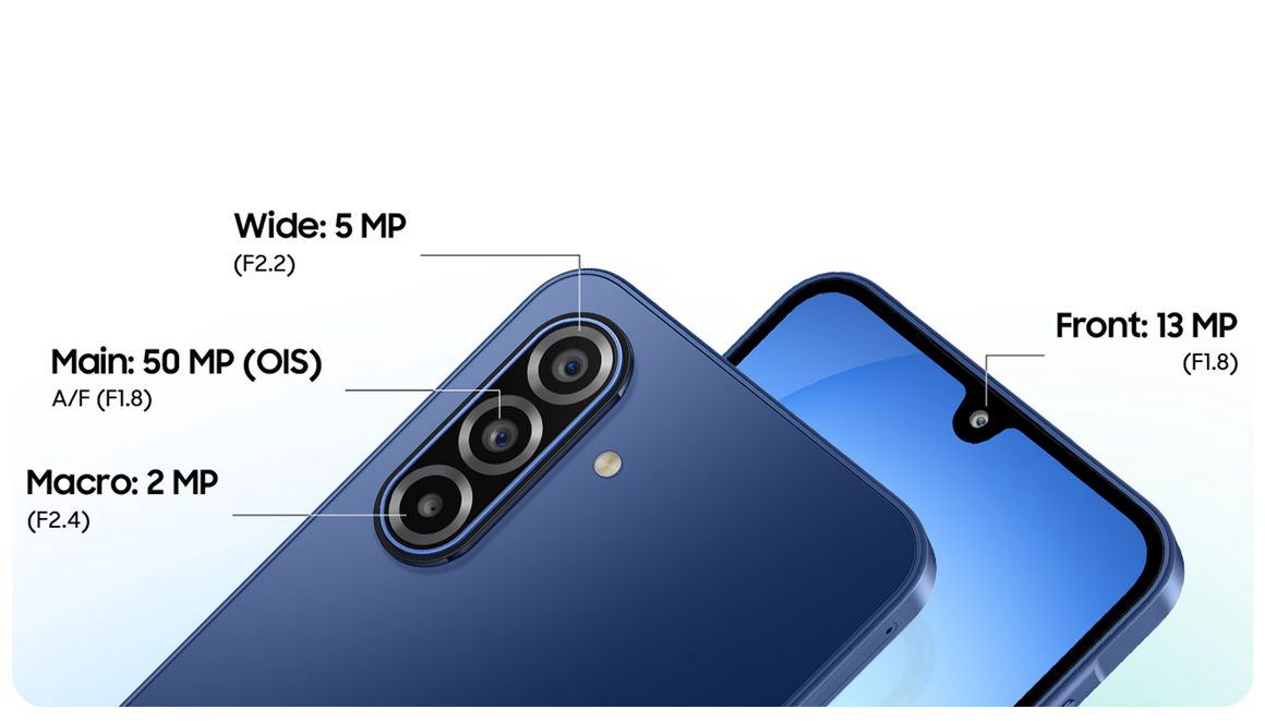 Создавайте точные кадры для каждой сцены с помощью тройной матрицы камер Galaxy A17 5G - 50-мегапиксельного широкоугольного, 5-мегапиксельного сверхширокоугольного и 2-мегапиксельного макрообъектива. Запечатлевайте моменты жизни, плавно переходя от размашистых пейзажей к крупным планам в ярких цветах и четкости.