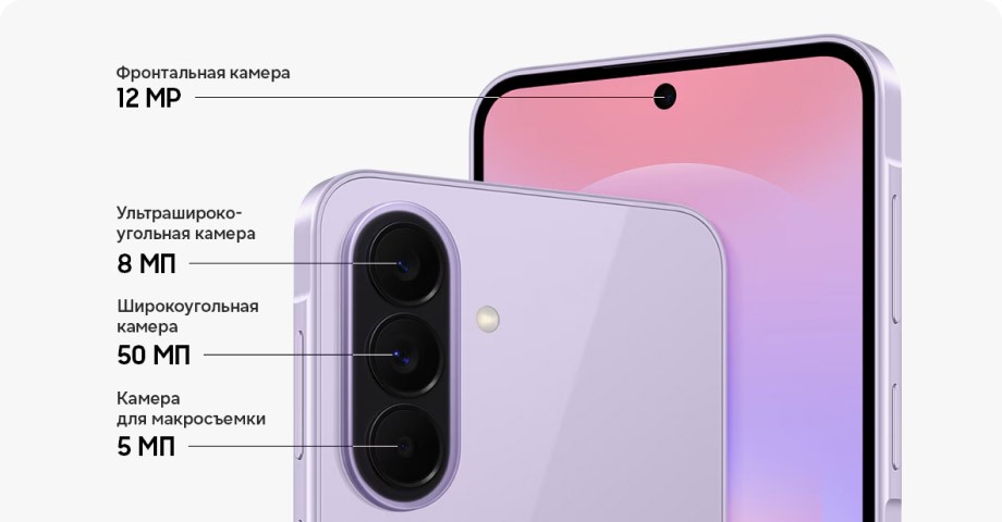Новый Galaxy A37 5G поможет сделать классные фото. Galaxy A37 5G оснащен широкоугольной камерой 50 МП, ультраширокоугольной камерой 8 МП и камерой для макросъемки 5 МП на задней панели, чтобы вы снимали яркие, насыщенные фотографии и видео, которыми хочется поделиться в соцсетях. Фронтальная камера поддерживает режим видеосъемки Super HDR — каждое ваше воспоминание будет живым и реалистичным.