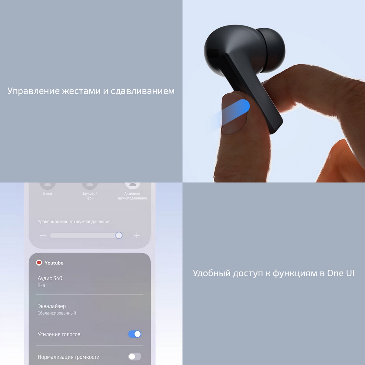 Активное шумоподавление помогает не отвлекаться на окружающие звуки. Будь то офис, транспорт или шумная улица – наушники создают личное пространство для музыки или разговоров. Ваши собеседники услышат только ваш голос, а не звук поезда или шум стройки на фоне. А ещё вы можете использовать наушники для живого перевода или запросов к ИИ-функциям вашего Galaxy, не вынимая гаджет из кармана – это ощущается как консьерж-сервис, только с максимальной конфиденциальностью.