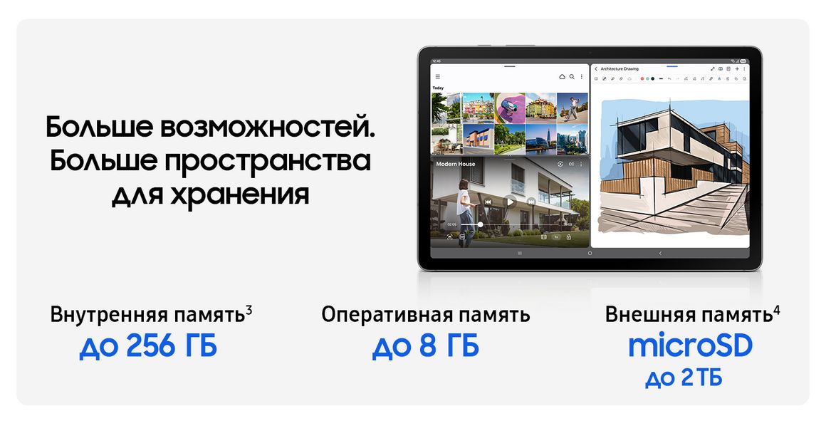Большой объем оперативной памяти обеспечивает стабильную производительность во время потоковой передачи данных, просмотра веб-страниц или одновременного выполнения нескольких задач. Внутренняя память может быть увеличена дополнительно до 2 ТБ с помощью карты microSD.