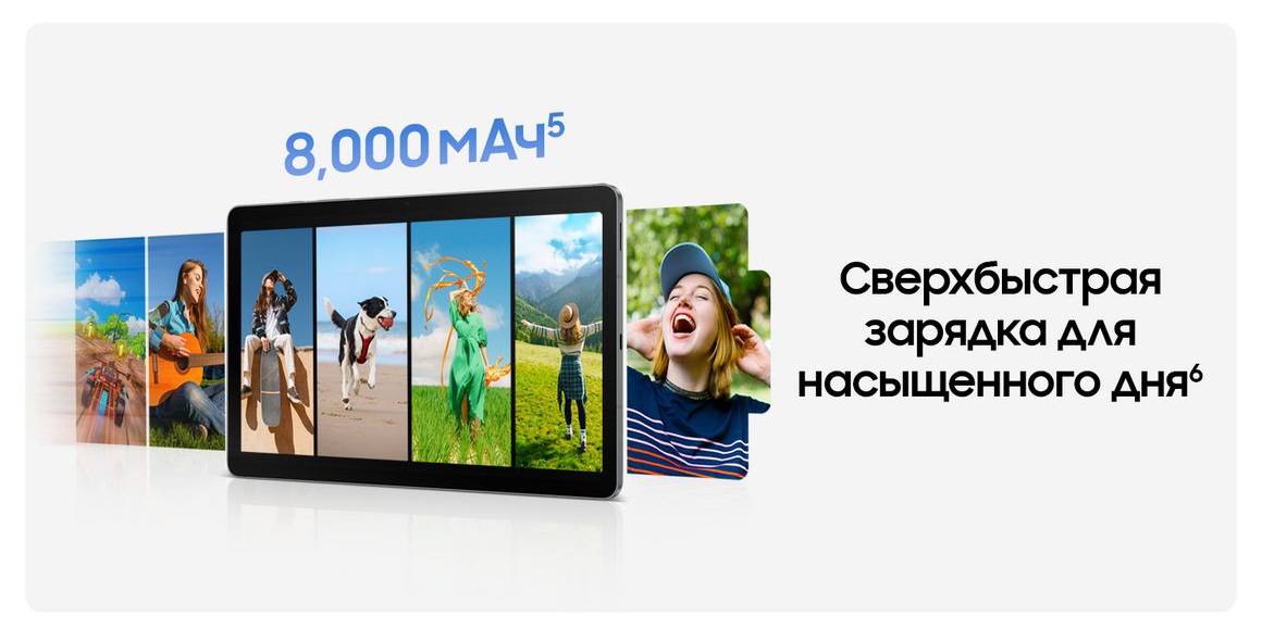 Аккумулятор емкостью 8000 мАч предназначен для работы, учебы и развлечений без перерывов — благодаря чему подзарядка нужна гораздо реже. Когда приходит время подзарядить устройство, функция «Быстрая зарядка» позволяет зарядить аккумулятор в мгновение ока, поэтому вам не придется долго ждать. Этот планшет с возможностью быстрой зарядки идеально подходит для занятого утра, плотного графика или длительных сеансов стриминга, так как обеспечивает надежный заряд и стабильную работу.