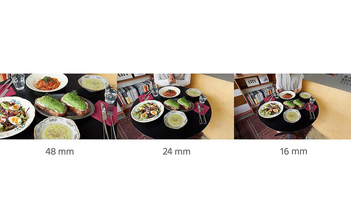 Благодаря увеличенным матрицам наших новых камер вы сможете делать потрясающие снимки в любых условиях. Охватывайте всю сцену с помощью сверхширокоугольного объектива 16 мм, снимайте панорамные кадры с помощью объектива 24 мм или используйте зум 48 мм, чтобы приблизить объект съёмки.