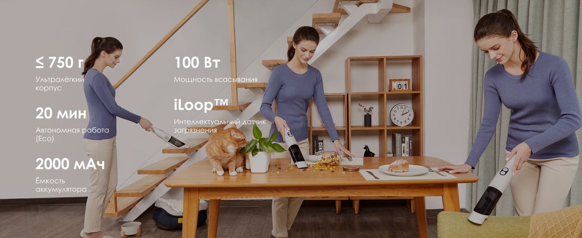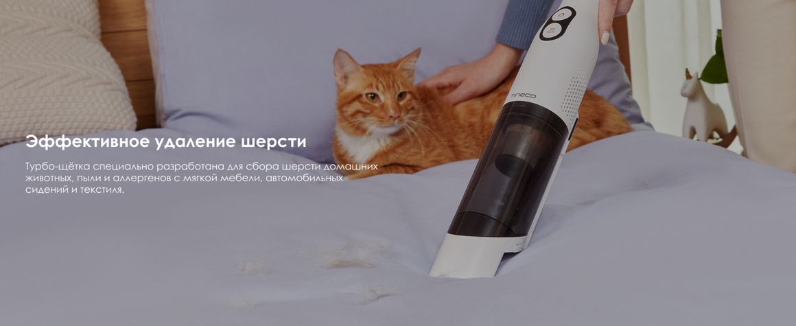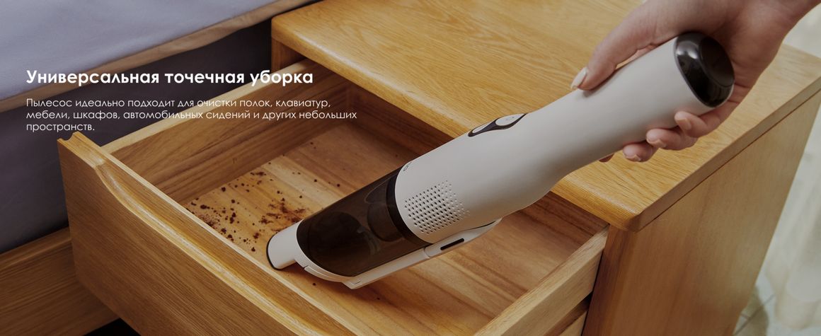 Компактный ручной беспроводной пылесос, созданный для быстрой и эффективной уборки шерсти домашних животных, пыли и мелкого мусора. Благодаря мощной турбо-щётке он легко очищает мягкую мебель, автомобильные сиденья, коврики и другие текстильные поверхности.