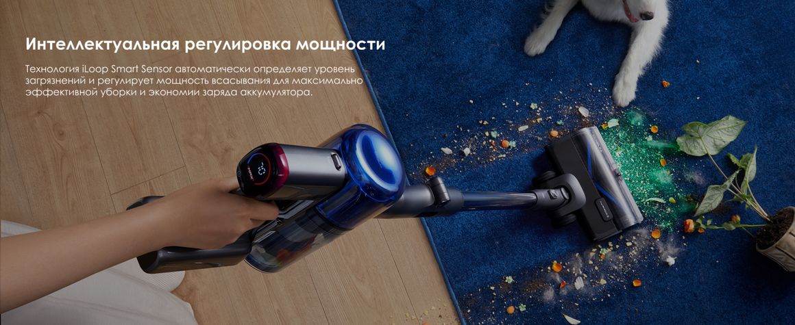 Благодаря двигателю мощностью 200 Вт и интеллектуальному датчику загрязнений iLoop Smart Sensor устройство автоматически определяет количество пыли и мусора и регулирует мощность всасывания для максимально эффективной очистки.