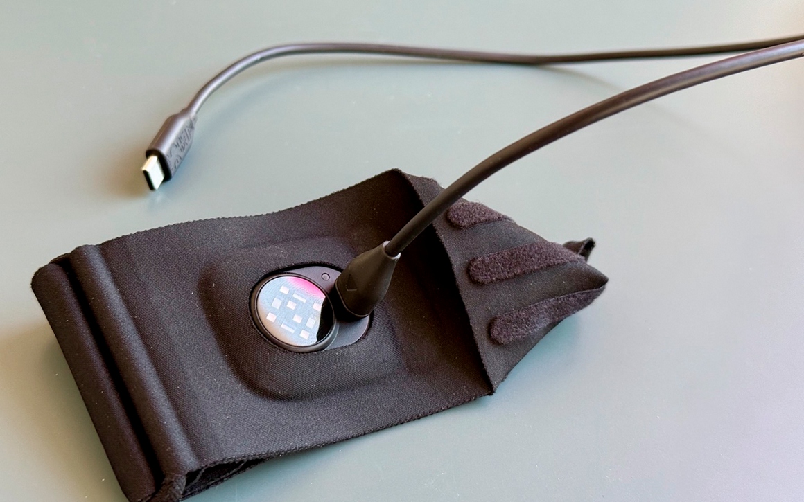 Для обеспечения идеального прилегания и точности измерений Garmin Index Sleep Monitor поставляется с ремешком в двух размерах. Вариант с ремешком S–M рассчитан на окружность верхней части руки от 20 до 29 см. Ремешок L–XL подходит для руки окружностью от 26 до 42 см. Сам ремешок изготовлен из мягкой ткани, он не натирает и не вызывает раздражения. Сенсорный блок трекера является съёмным. Эта особенность упрощает уход за ремешком — его можно стирать.